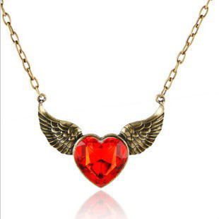 Title (ebay affiliate link): Bronze vintage retro antique style long necklace jewellery red heart with wings
