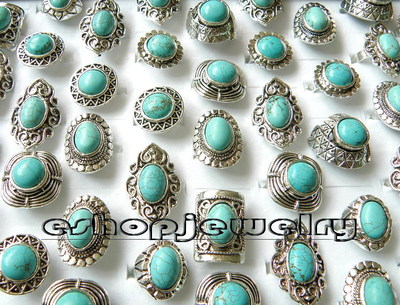 Title (ebay affiliate link): New 36Pcs Nature Turquoise Antique Silver Plated Rings