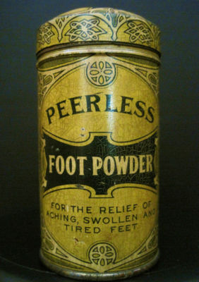 Title (ebay affiliate link): VINTAGE ADVERTISING TIN-FOOT POWDER-TALCUM-HEALTH-MEDICAL-FEET-PEERLESS CO.-TALC