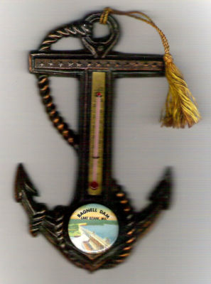 Vintage Souvenir " Bagnell Dam " - Lake of the Ozark, MO. Metal Thermometer