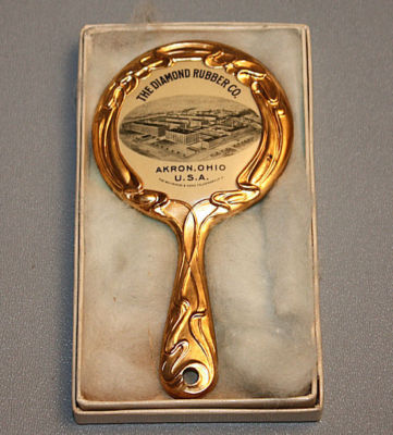 Title (ebay affiliate link): AMAZING Celluloid / Tin Advertising Pocket Mirror Diamond Rubber Co. Akron, OH