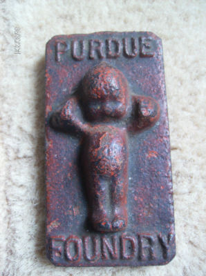 Title (ebay affiliate link): @@ANTIQUE Kewpie PURDUE Foundry CAST Iron PLAQUE Advertising PAPER Weight Figure