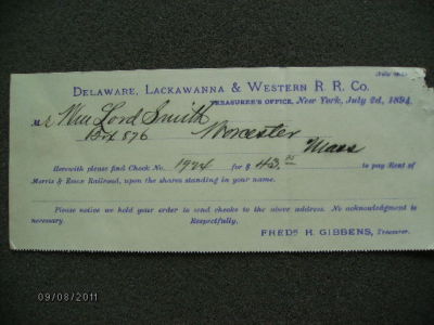 DELAWARE LACKAWANNA & WESTERN RAILROAD 1894 RECEIPT