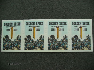 UNION PACIFIC RAILROAD 4 GOLDEN SPIKE CENTENNIAL STAMPS