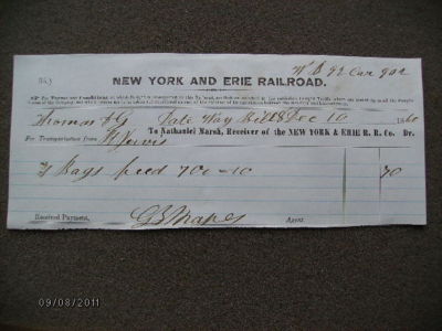 NEW YORK & ERIE RAILROAD 1860 FREIGHT RECEIPT