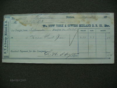 Title (ebay affiliate link): NEW YORK & OSWEGO MIDLAND RAILROAD 1876 FREIGHT RECEIPT