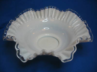 VINTAGE ART GLASS CRIMPED AND RUFFLED MILK WHITE DISH