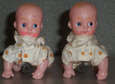 Title (ebay affiliate link): #135 Vintage Pair of JAPAN Windup Crawling Baby Poka Dot Outfit Both Babies Work