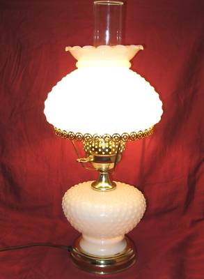 Lg GWTW Style Milk Glass Hobnail Hurricane Boudior Lamp