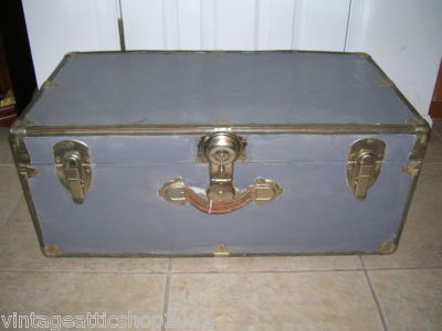 Title (ebay affiliate link): Vintage Traveling Trunk WIth Tray Grey Leather Straps