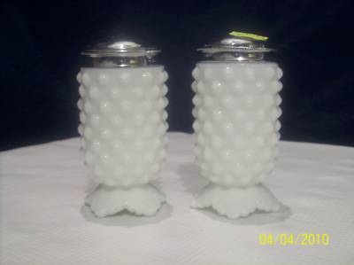 Fenton Milk Glass 3" Hobnail Salt & Pepper & Dish