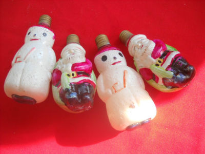 Title (ebay affiliate link): FOUR GLASS VINTAGE PAINTED SNOWMANS/SANTAS, ELECTRIC CHRISTMAS BULBS