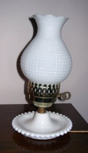 Vintage Hobnail Milk Glass Hurricane Lamp (11" tall)
