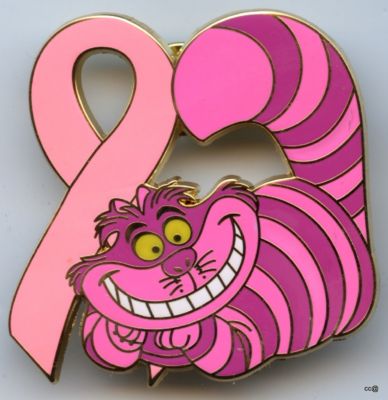 Title (ebay affiliate link): PINK RIBBON PIN cheshire cat 1 3/4 inch alice w land