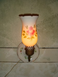 Vintage Hand Painted Milk Glass Hurricane Wall Lamp