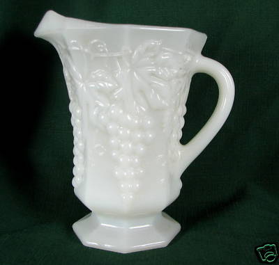 Anchor Hocking Milk Glass Pedestal Pitcher Grape Patter