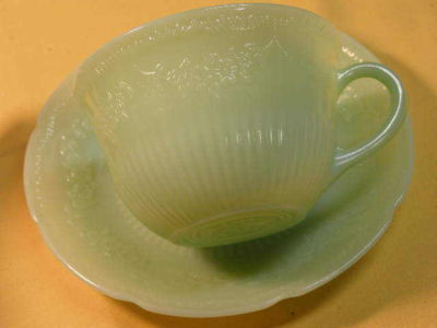 FIRE KING Jadite Depression Glass ALICE Cup & Saucer Set 1940's Hocking