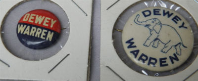 Title (ebay affiliate link): 2 DEWEY & WARREN PIN BACK POLITICAL BUTONS - 1948 ELECTION FOR PRESIDENT