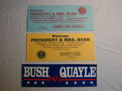 Bush Quayle Bumper Sticker and Two Tickets to see the President & Mrs. Bush