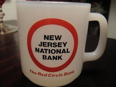Glasbake New Jersey National Bank Milk Glass Mug Cup