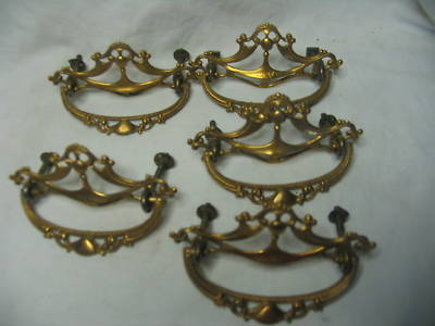 5 Antique Brass Furniture Handles/Drawer Pulls