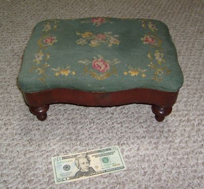 Title (ebay affiliate link): Antique Vintage Small Mahogany FOOTSTOOL Embroidered Top