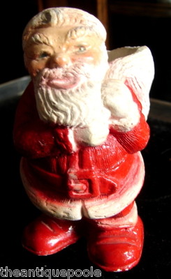 Title (ebay affiliate link): Vintage Christmas Plasto Painted Chalkware Santa w/Open Sack Candy Container