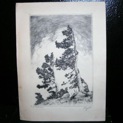 Title (ebay affiliate link): VINTAGE LYMAN BYXBE - WINDBLOWN - CHRISTMAS CARD PENCIL SIGNED COLORADO ETCHING