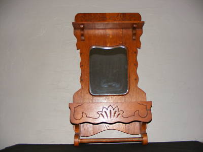 Title (ebay affiliate link): ANTIQUE PRIMITIVE OAK WALL SHELF MIRROR TOWEL RACK -NR