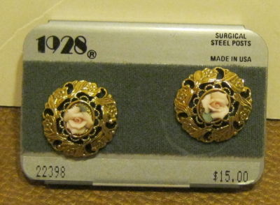 Title (ebay affiliate link): Beautiful 1928 Pierced EARRINGS 1920's Styling CAPODIMONTE Style Rose Button NEW
