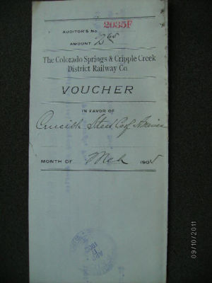 COLORADO SPRINGS & CRIPPLE CREEK DISTRICT RAILWAY 1905 VOUCHER