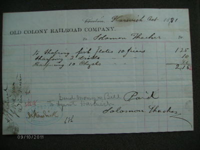 OLD COLONY RAILROAD 1881 RECEIPT HARWICH