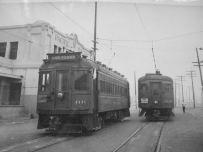 Title (ebay affiliate link): Pacific Electric Station Photograph San Pedro Trains #1111 & #318 5x7