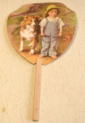 CHURCH HAND HELD FAN REAL OLD ANTIQUE. SWANS ICE CREAM