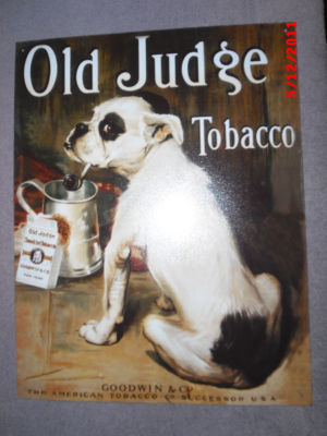 Old Judge Tobacco Metal /Tin Bulldog with Pipe Sign