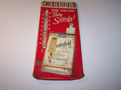 Circa 1962 Chesterfield cigarettes advertising sign, broken thermometer