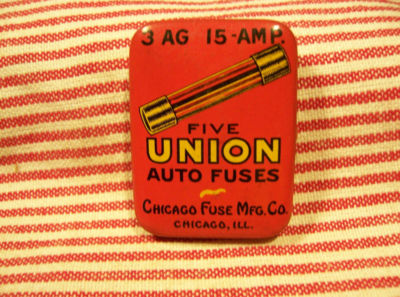 Title (ebay affiliate link): Auto Fuses-Union-3 AG 15 AMP-Chicago Fuse Mfg.-full + advertising-NR
