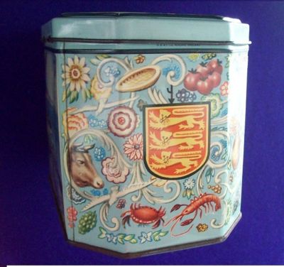 VINTAGE HUNTLEY & PALMERS BISCUITS TIN READING ENGLAND GUERNSEY COW ST PETERPORT