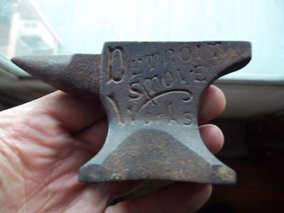 Title (ebay affiliate link): ANTIQUE DETROIT MI CAST IRON WOOD STOVE WORKS MINI ANVIL ADVERTISING.