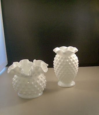Fenton Hobnail Milk Glass Small Vases (2) Nice
