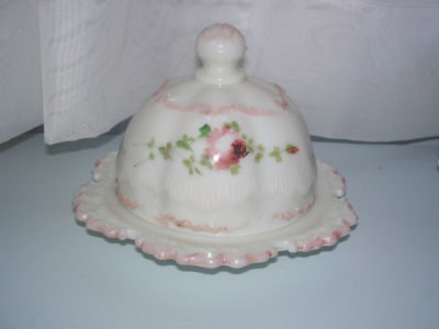 Title (ebay affiliate link): Antique - Floral Hand Painted White Milk Glass Round Butter Dish With Lid - EUC
