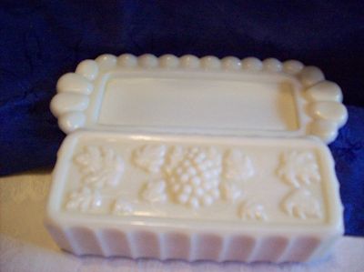 Westmoreland Milk Glass Covered Butter Dish Grape Panel