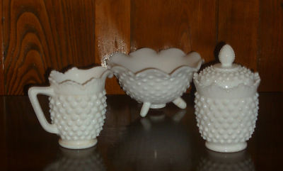 Milk Glass Hobnail Creamer Sugar & Candy Bowl