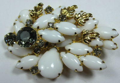 Title (ebay affiliate link): Vintage Milk Glass Black Diamond Rhinestone Brooch Pin Juliana?