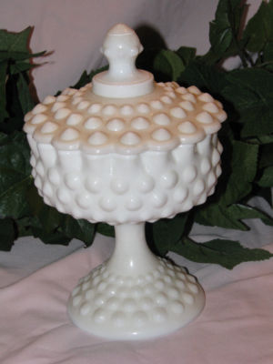 WHITE MILK GLASS HOBNAIL COVERED CANDY DISH FENTON?
