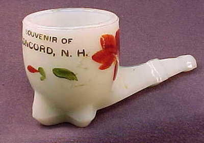 MILK GLASS PIPE MATCH HOLDER OLD SOUVENIR OF CONCORD NH