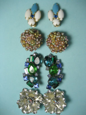 Title (ebay affiliate link): VTG Alice Caviness Juliana Coro green/ blue Rhinestone milk glass earring lot