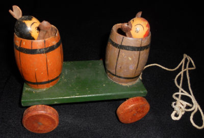 VINTAGE PULL TOY--BOYS IN A WAGON