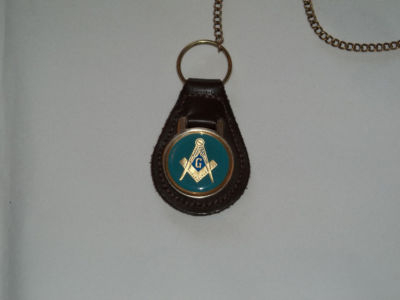 Vintage Masonic Leather Keychain Metal Insert Masons