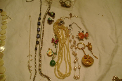 Title (ebay affiliate link): VINTAGE COSTUME RHINESTONE,PEARL NECKLACES,KEYCHAIN,WATCH /FOB , EARRINGS